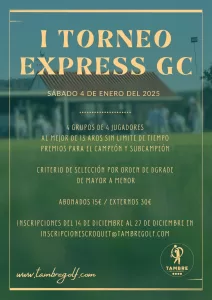 Todos los sábados juega y compite en Tambre Golf & Croquet. Con la apertura de los 3 campos, el timming de competición cambia, disfruta de torneos express de un día o de torneos patrocinados. Accesibles para todos los jugadores, diferentes formatos, diferente criterio de selección pero siempre sin límite de tiempo.