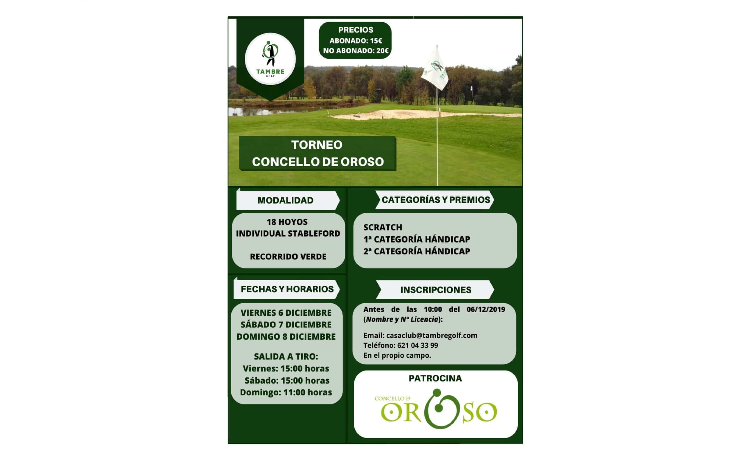 Del 6 al 8 de Diciembre de 2019 se podrá disputar en Tambre Golf el Torneo Concello de Oroso.