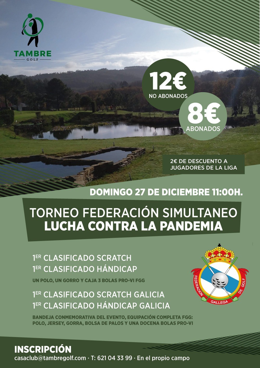 La Federación Gallega de Golf, en colaboración con los Clubes de Golf y Pitch&Putt de Galicia, y con la idea de incentivar la práctica de nuestro deporte evitando en lo posible la movilidad, organiza para la jornada del domingo 27 de diciembre una competición simultánea en todos los clubes de Galicia que se han querido sumar a esta iniciativa.