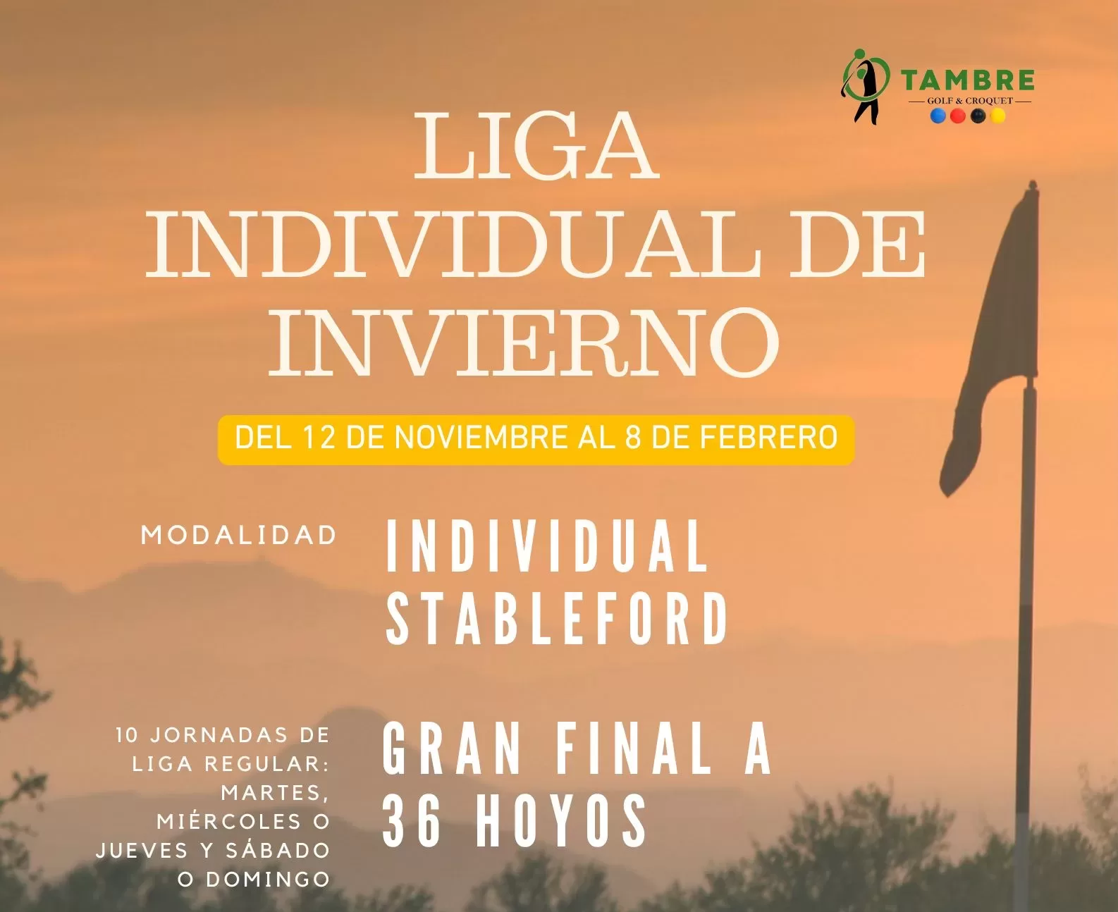 A partir del 12 de noviembre y hasta el 8 de febrero de 2025 se disputará la V Liga de Invierno en Tambre Golf & Croquet. Cada jugador podrá salir dos veces por jornada, una entre semana y una el fin de semana, contando para la clasificación final las 7 tarjetas con mejor resultado.